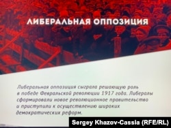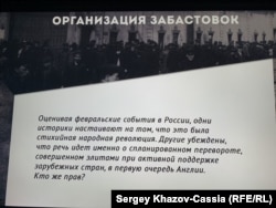 "То же самое с организаторами февраля. У событий 1917 года не было организаторов. Революция вспыхивает стихийно, она предполагает участие представителей широких социальных слоёв, народа, в отличие от переворота, который совершает группа лиц. Революции, как правило, начинаются с мощнейшего социального взрыва, и потом уже к власти приходят какие-то политические элиты. Как, к примеру, Временный комитет Государственной думы, который потом формирует с Петросоветом Временное правительство. Но называть членов Временного правительства организаторами февраля ни в коем случае нельзя, потому что непосредственного участия в событиях 23–25 февраля они не принимали", – говорит Владислав Аксёнов. Тексты про английско-масонское влияние были им вымараны при работе с материалами выставки, все они до сих пор представлены на стендах.